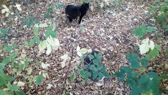 Фото гуляющих котиков, осенняя прогулка.