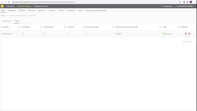 Управление заказами Заказ и печать Кодов маркировки