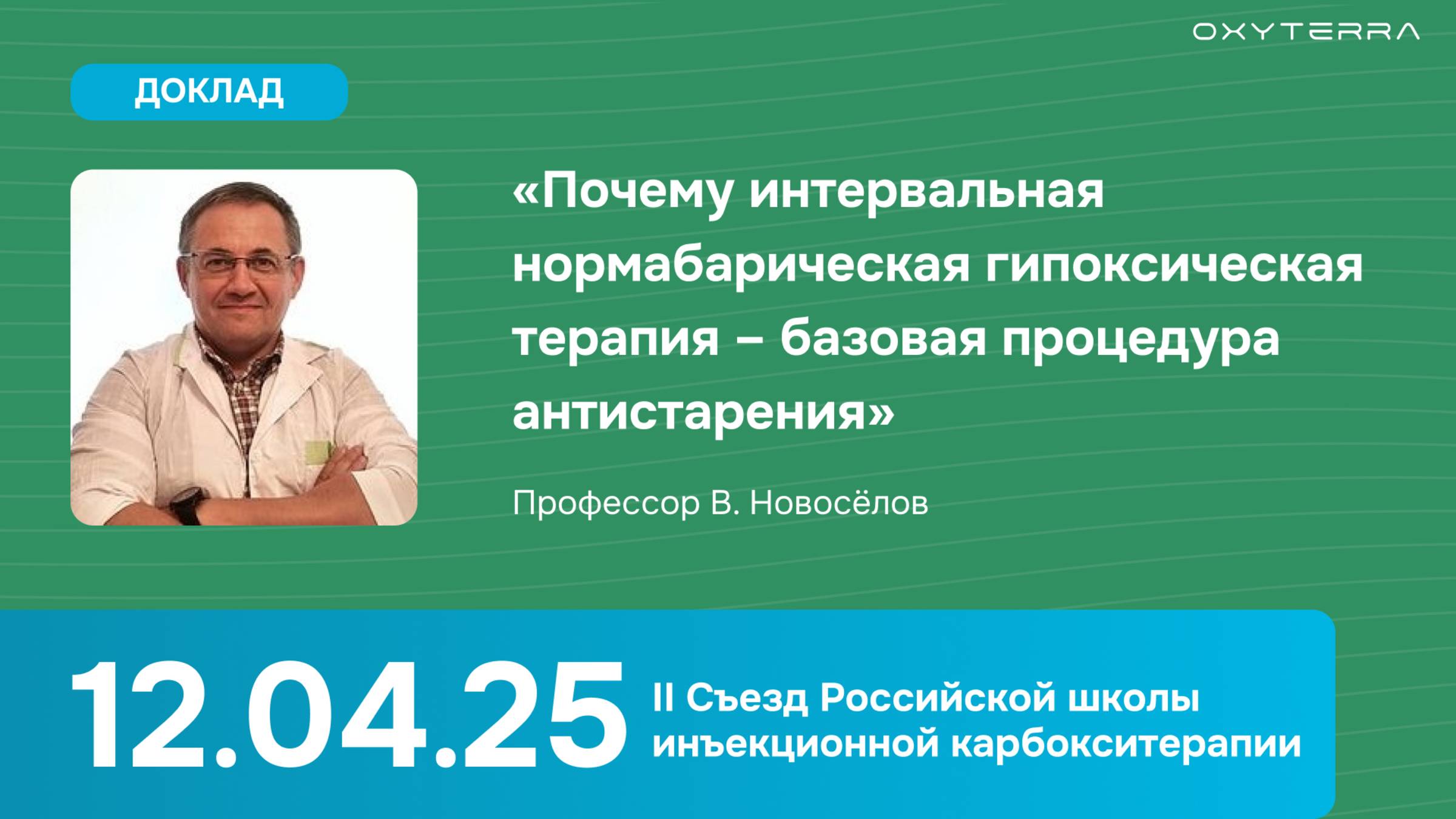 🔬 Доклад Валерия Новоселова «Почему интервальная нормабарическая гипоксическая терапия – базовая процедура антистарения» Валерий Новоселов, врач-гериатр, невролог, нейрофизиолог, геронтолог, директор «Научно-медицинского геронтологического центра», председатель секции геронтологии МОИП при МГУ им. М. В. Ломоносова, делится своим практическим взглядом на старение как биологический процесс и предлагает современные пути замедления возрастных изменений 🌬 В центре внимания доклада – интервальная нормабарическая гипоксическая терапия (ИГТ) как фундаментальный метод борьбы со старением. Профессор объясняет, почему именно ИГТ должна стать базовой процедурой в антивозрастной медицине: она активирует митохондрии, усиливает клеточную адаптацию и помогает справляться с хроническими воспалениями – основой многих возрастных заболеваний Отмечая сдвиг в структуре заболеваемости, спикер подчеркивает, что если в XX веке люди умирали от инфекций, таких как туберкулез, то сегодня основными вызовами стали болезни цивилизации, в том числе болезнь Альцгеймера, которая разрушает не только организм человека, но и жизнь всей его семьи 🫂 ❗️ Доклад будет полезен всем, кто интересуется возможностями современной геронтологии, профилактикой когнитивных нарушений, восстановлением метаболического баланса и естественными, научно обоснованными подходами к активному долголетию