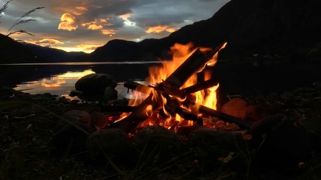 Незабываемая ночь у костра на берегу озера. Расслабляющая музыка огня, для сна, отдыха и релаксации.