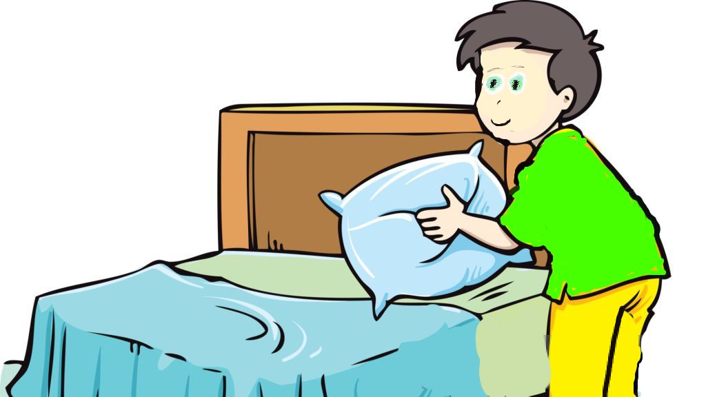 Учу менять постель.