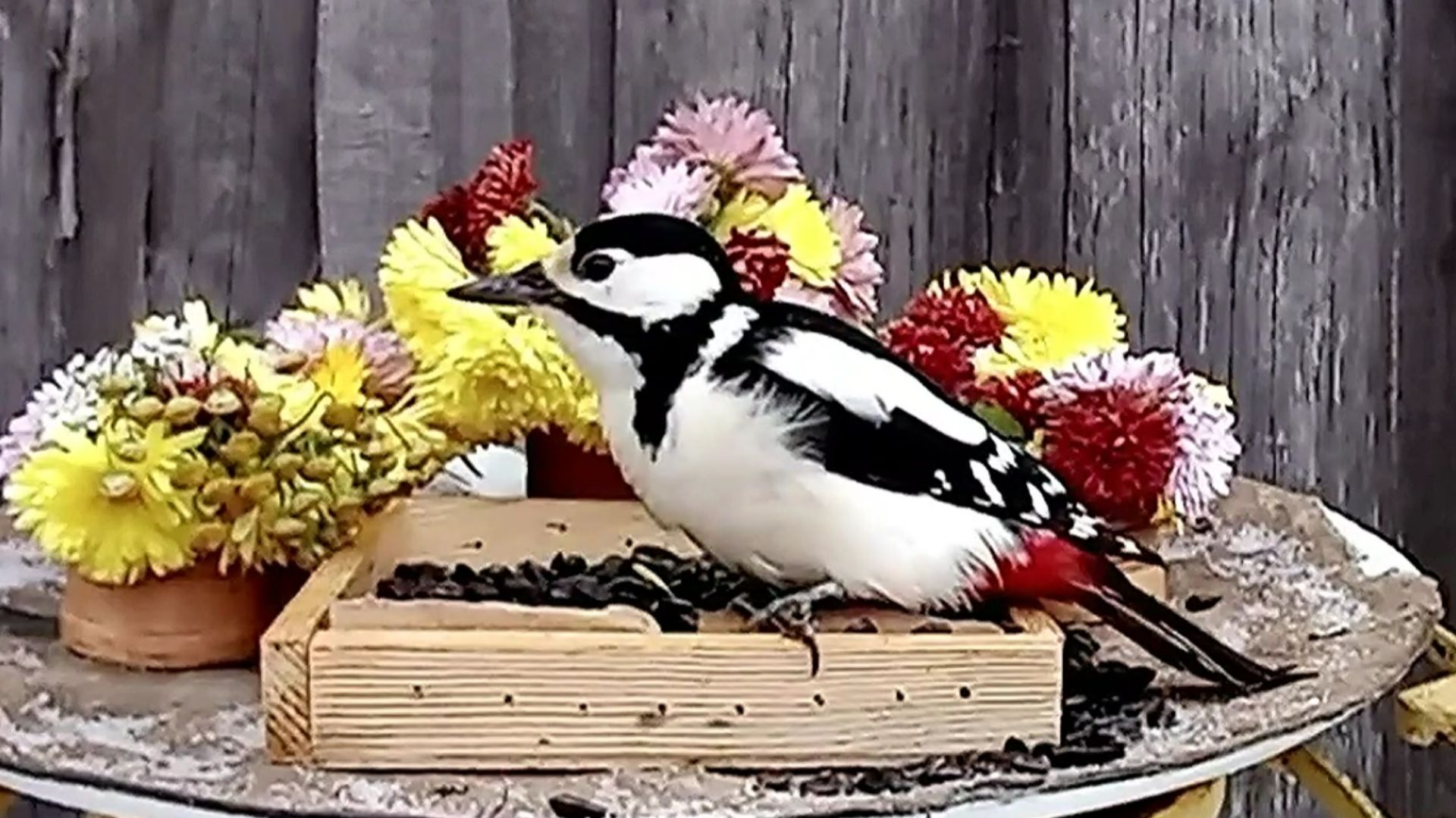 Дятлы атаковали кормушку