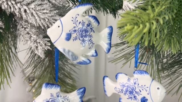 Набор ёлочных игрушек РЫБКИ - ДЕЛФТСКИЙ АКВАРИУМ, фарфор, 9 см, 3 шт., J7792-набор