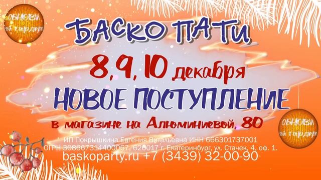 8, 9, 10 декабря НОВОЕ ПОСТУПЛЕНИЕ! В г. Каменск-Уральский, Алюминиевая, 80. #НОВОЕПОСТУПЛЕНИЕ_БАСКОПАТИ #ЗимаБаскоПати Приятных и ярких покупок!