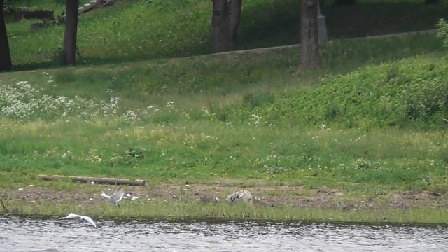 Чайки и Крачки у моста Невского в Великом Новгороде, 3 июня 2023