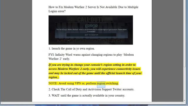 Fix Modern Warfare 2 Server Is Not Available Due to Multiple Logins error