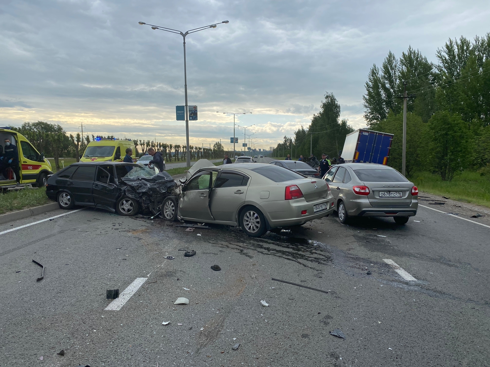 8 июня 2023 года в 06.14 г. Нижнекамск автодорога Соболековская 2 км водитель автомобиля Ваз 2114 2004 г.р., следуя со стороны г. Набережные Челны в направлении г. Нижнекамска не выбрал безопасную скорость, не справился с управлением, нарушил правила расположения транспортного средства на проезжей части, выехал на встречную полосу и совершил столкновение с автомобилем ВАЗ 2114 под управлением водителя 1998 г.р., далее совершает столкновение с автомобилем Митсубиси под управлением водителя 1963 года рождения. После столкновения первый автомобиль ВАЗ 2114 совершает столкновение с грузовым автомобилем Камаз под управлением водителя 1977 г.р. В результате пассажир первого ВАЗ 2114 скончался на месте ДТП, водитель автомобиля с травмами был доставлен в больницу, где позже скончался.