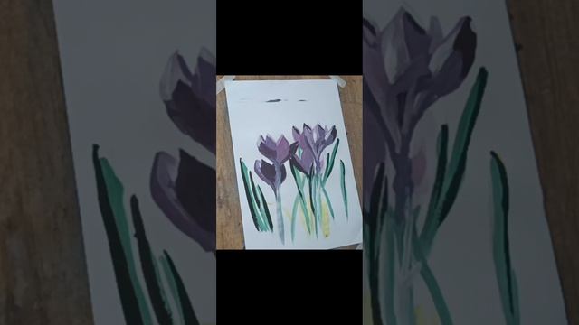 Пишем крокусы гуашью. Шафран
