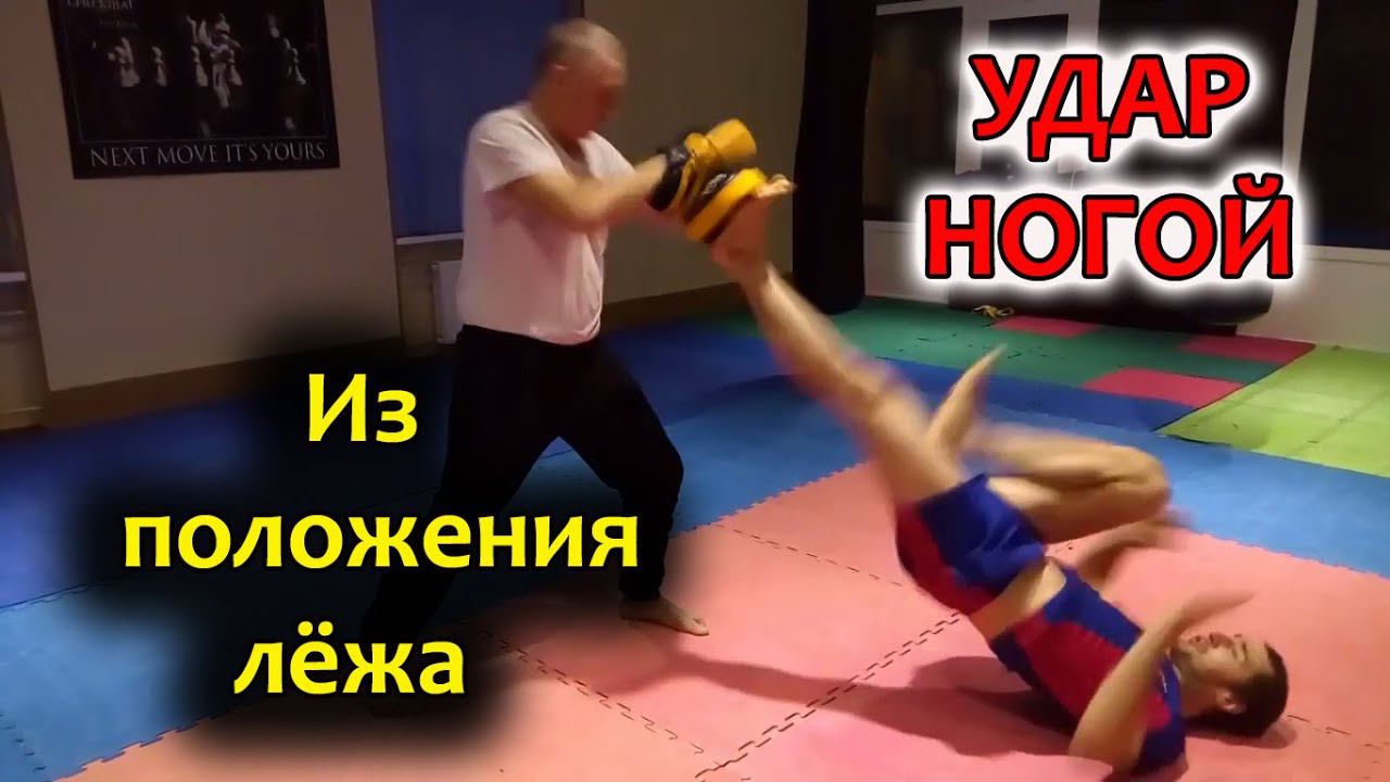 Удар ногой вверх из положения лёжа (up kick).
