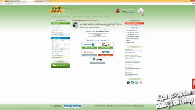 Ссылка на регистрацию- https://goo.gl/QJ7Sx2 ------------------------------------------------------------------------------------------------------------ Ответы при регистрации на СЕО СПРИНТ: 1. Рекламодатель 2. Аккаунт будет удален 3. Категорически запрещены 4. Запрещено 5. Не может. Деньги можно потратить только на рекламу 6. Баланс и площадки обнуляются, деньги не возвращаются, рефералы свободны 7. Покинуть проект