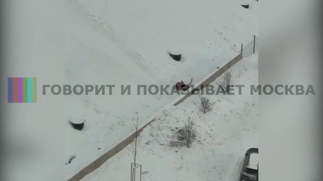 Столкновение человека с бетонным забором во время спуска с вершины свалки засняли жители Некрасовки. Понадобилась ли медицинская помощь пострадавшему неизвестно.