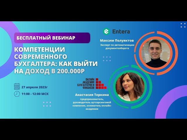 Вам нравится ваша работа, но кажется, что вы можете больше? Вам не кажется, так и есть! Заработок 200.000р. для бухгалтера - это не роскошь, а лишь еще один кейс в копилку нашей гостьи. На вебинаре Анастасия расскажет: -какие самые распространенные услуги на удаленке -какие схемы работы принесут доход 200.000р и более -как и зачем работать над личным брендом -какими знаниями должен обладать современный бухгалтер -как правильно взаимодействовать с клиентом Хотите узнать, когда будет следующий вебинар? Подписывайтесь на рассылку анонсов: https://entera.pro/webinary #бухгалтерскиеуслуги #бухгалтерскийучет #бухгалтерскоеобслуживание #бухучет #аутсорс #ведениебухгалтерскогоучета #бухгалтерудаленно #бухгалтерскаякомпания #аутсорсингбухгалтерскихуслуг #entera #энтера #автоматизацияпервички #автоматизациябизнеса #автоматизация1с #автоматизацияпервички #распознаваниепервички #сервисавтоматизации #бухгалтеру #авансовыйотчет #вводчековв1с #чекив1с #приложение1с #мультибухгалтер #планирование