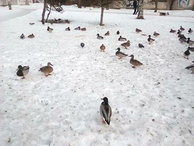 Дикие утки посреди города