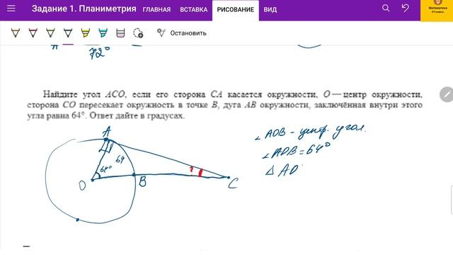 ТГ-канал: t.me/ege_oge_maths. Вся теория и практика для ПРОФИЛЬного ЕГЭ: https://stepik.org/a/123457. Много задач для самостоятельного решения с моментальной проверкой результата! Разбираем Задание 1 - геометрия в плоских фигурах профильного уровня. В видео решаем задачи: 1. Найдите угол ACO, если его сторона CA касается окружности, O — центр окружности, сторона CO пересекает окружность в точке B, дуга AB окружности, заключённая внутри этого угла, равна 64∘. Ответ дайте в градусах. 2. Через концы A и B дуги окружности с центром O проведены касательные AC и BC. Угол CAB равен 32∘. Найдите угол AOB. Ответ дайте в градусах.