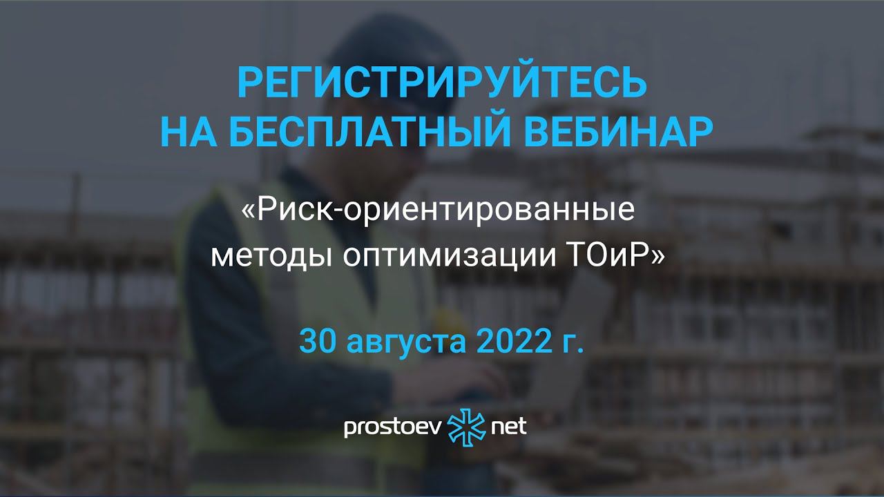 Бесплатный вебинар «Риск-ориентированные методы оптимизации ТОиР». 30 августа 2022 г.