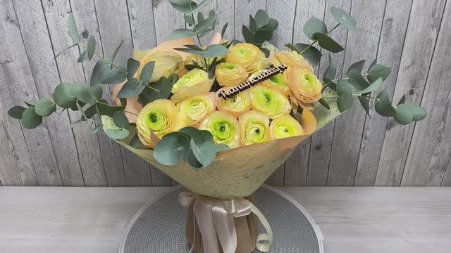Букет из 19 ранункулюсов сорта Пикоти с эвкалиптом. Детальнее о товаре https://ranunculus.ru/bukety/buket-iz-19-ranunkulyusov-pikoti/ Купить букет из ранункулюсов в Москве с доставкой https://ranunculus.ru/bukety/ranunkulyusy/ Сайт https://ranunculus.ru