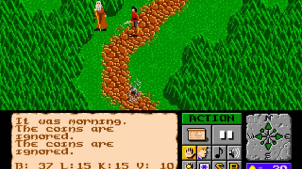 РПГ. Здесь есть сюжет, но он очень банальный. Главное - тут очень большой мир. Никто не скармливает вам его по частям (Как, скажем, в D&D:Warriors of the eternal sun) вы сразу вольны идти куда угодно. Долго путешествуя, можно найти клад. Если вы долго не отдыхали, не ели и не пили, то ваш персонаж упадет и будет спать прям на дороге... Есть смена дня и ночи. Ночью очень плохо видно - легко заблудиться. Основной квест без прохождения не выполнить, но разве для этого играют? Развитие персонажа примитивное, но зато радует хорошо выполненный экран инвентаря. Графика - средняя, управление неудобное. Есть способ сохранения с помощью паролей.