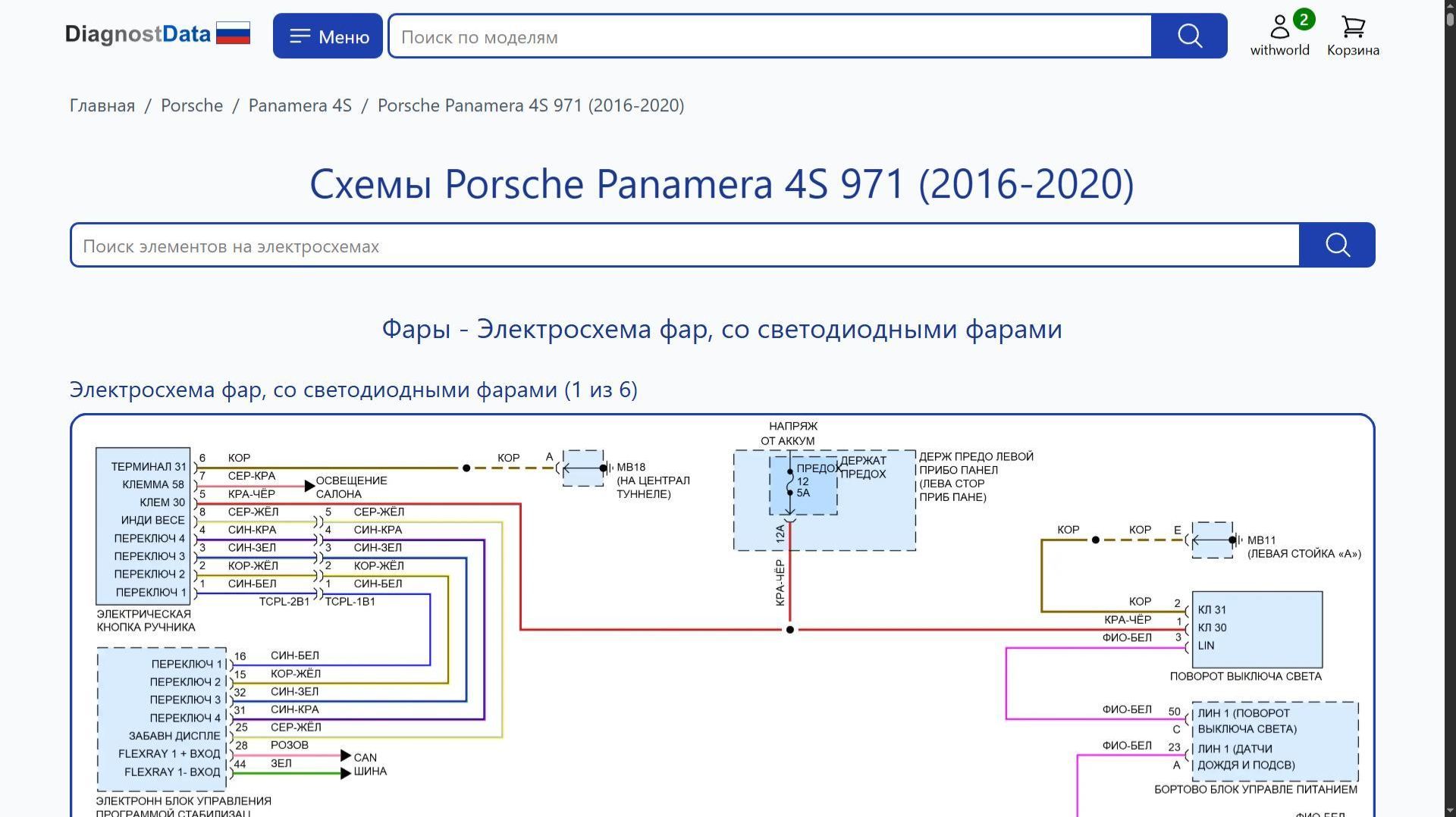 https://diagnostdata.ru/porsche/panamera-4s/971-2016-2020/ Электрохемы, распиновки, схемы электропроводки Porsche Panamera 4S 971 (2016, 2017, 2018, 2019, 2020 годов выпуска) 2.9L TWIN TURBO, 2.9L TWIN TURBO HYBRID, 3.0L TURBO, 4.0L TURBO, 4.0L TWIN TURBO HYBRID Схемы на русском языке для систем: Схемы Фары, Схемы Фары, Схемы Складная крыша/люк, Схемы Can шина, Схемы Блоки управления кузовом, Схемы Подушки безопасности, Схемы Клаксон, Схемы Точки подключения масс, Схемы Блокировка селектора, Схемы Стеклоподъемники, Схемы Память, Схемы Блок предохранителей и реле, Схемы Антиблокировочная система abs, Схемы Сиденья, Схемы Электроусилитель руля, Схемы Активные управление кузовом и подвеской, Схемы Системы помощи водителю, Схемы Стартер/генератор, Схемы Круиз-контроль, Схемы Сигнализация, Схемы Фары и фонари, Схемы Магнитола, Схемы Приборная панель, Схемы Освещение салона, Схемы Кондиционирование воздуха, Схемы Центральный замок, Схемы Управление зеркалами заднего вида, Схемы Предупреждение, Схемы Багажник, задняя дверь, лючок топливного бака, Схемы Подогрев стекол, Схемы Электронная подвеска, Схемы Дворники и омыватели, Схемы Коробка передач, Схемы Вентилятор охлаждения 2.9л твин турбо, Схемы Вентилятор охлаждения 2.9л твин турбо гибрид, Схемы Вентилятор охлаждения 3.0л турбо, Схемы Вентилятор охлаждения 4.0л турбо, Схемы Вентилятор охлаждения 4.0л твин турбо гибрид, Схемы Двигатель, и др.