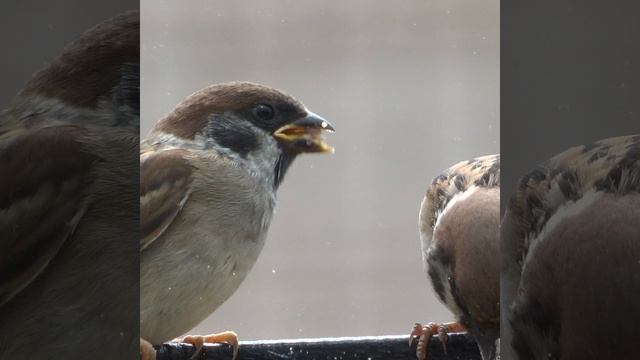 Воробьи в кормушке -