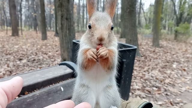 Кормлю симпатичную белку