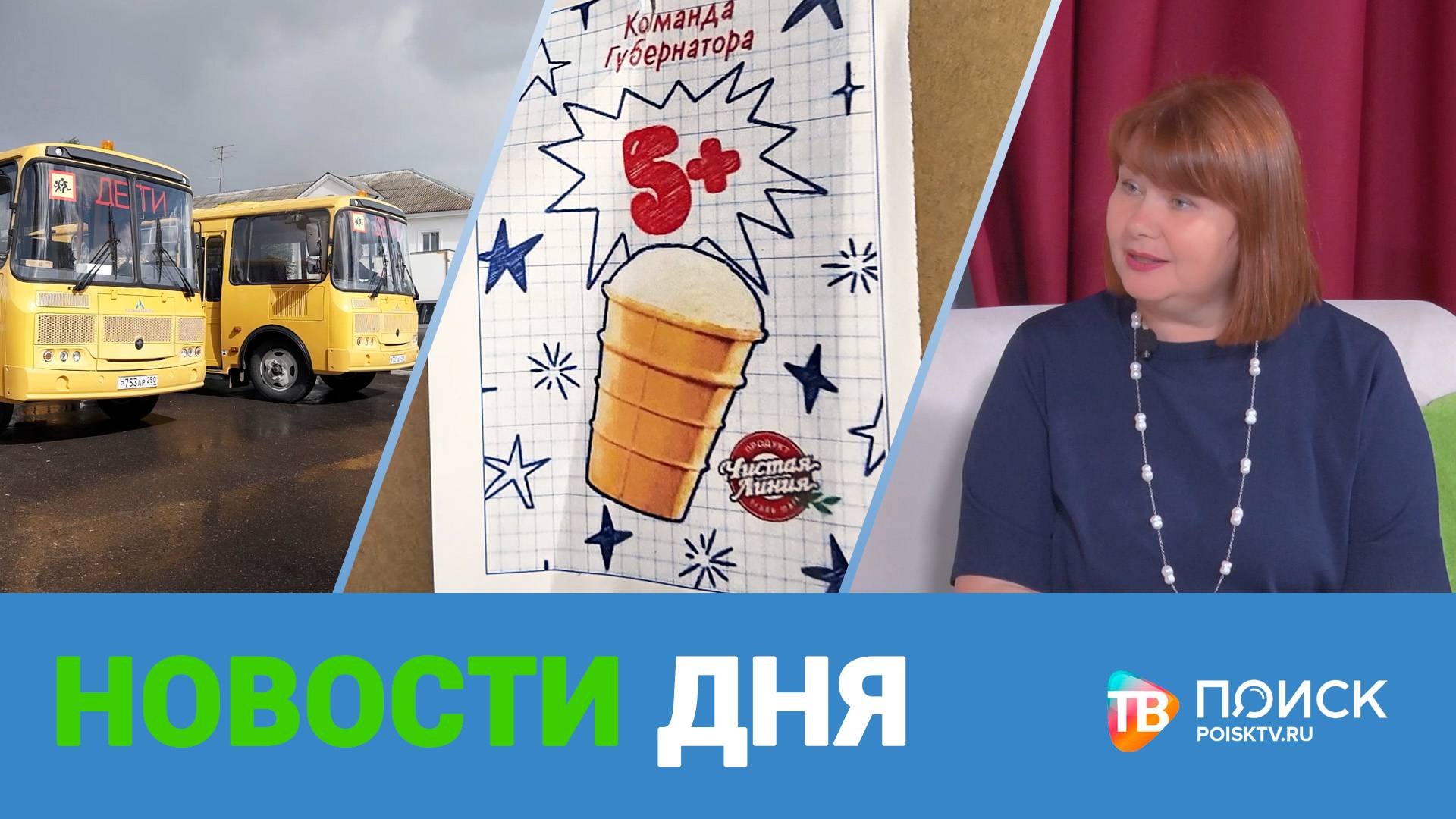 * Пломбир со вкусом ванили в вафельном стаканчике от команды Губернатора. Более 6,5 тысяч порций мороженного сегодня получили клинские школы. * В Первомайском сквере завершается перенос сетей водоснабжения. После расширения Ленинградского шоссе коммуникации оказались в сантиметре от оживленной трассы. * Клинский школьный автопарк получил два новых автобуса, которые порадуют юных пассажиров комфортными условиями. Транспорт будет возить детей в учебное учреждение поселка Чаковского и в отделения школы «Развитие». * Ночной забег - впервые в Клину. Массовое спортивное мероприятие провели в парке "Сестрорецкий". 85 участников пробежали дистанции 5 и 10 километров. Об этом и не только в программе "Новости дня"