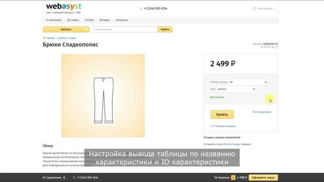 Таблица размеров (Start Table Size) | Обзор плагина для сайта Webasyst