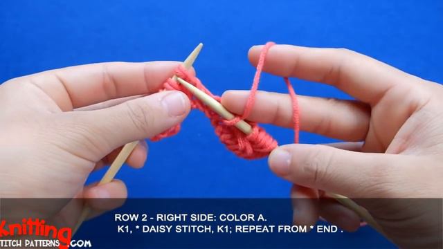 How to knit the Two-color Daisy stitch . Follow along and see how easy it is to knit. For more knitting stitches, visit website: http://knittingstitchpatterns.com. There are countless beautiful patterns for you to choose from that surely you will love. All free! Happy knitting!