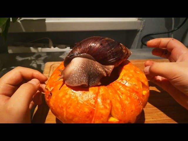 Улитка ахатина отлично живёт в тыкве