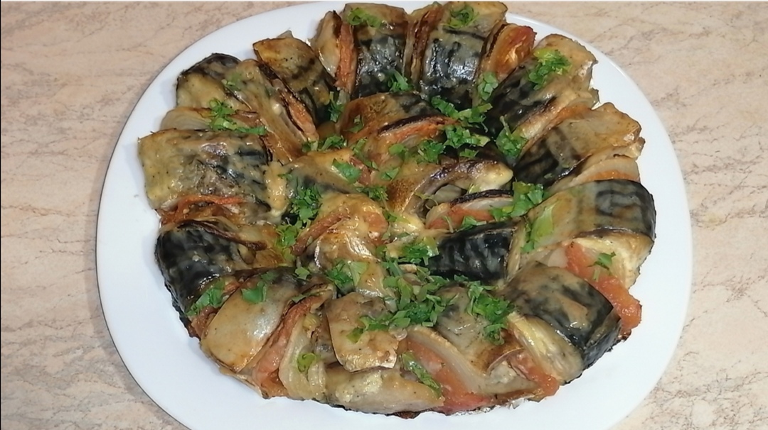 Скумбрия запечённая с овощами