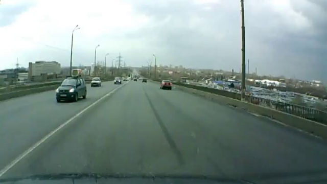Это происшествие произошло на мосту в Нижнем Новгороде (Россия) и было снято на регистратор встречного автомобилиста.