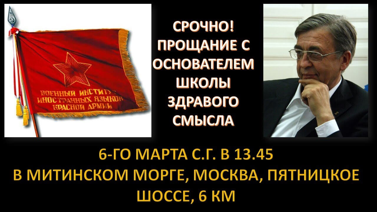 Уважаемые друзья! 01 марта 2023 года от нас ушел Назаревский Алексей Николаевич основатель Клуба товарищей Военного института иностранных языков Красной Армии, наставник Школы Здравого Смысла, душевный человек и верный товарищ. НАЗАРЕВСКИЙ АЛЕКСЕЙ НИКОЛАЕВИЧ, Первый проректор Школы Здравого Смысла, которая была создана по инициативе Алексея Николаевича Назаревского в 2008 году., Президент Клуба Товарищей Военного института Красной Армии, переводчик, философ, поэт. Прощание состоится в Митинском морге, по адресу Москва, Пятницкое шоссе, 6 км 6-го марта 2024 года в 13.45. Помощь Школе для увековечивания памяти Назаревского Алексея Николаевича можно оказать переводом пожертвования на карту Мир 2202 2023 6771 0690 https://shzs.info/index.php/shzs-news-events/2938-viiia-skorb-nazarevskii-aleksei-nicolaevich