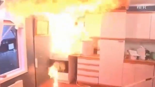 Демонстрация - почему нельзя тушить горящее на сковородке масло водой