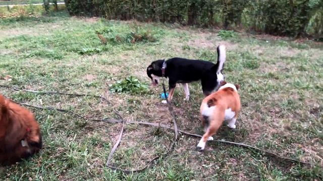 Английский бульдог Черри на вечернем гулянии