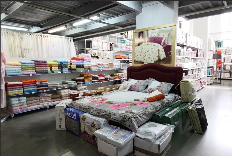 Очень большой огромный магазин с большим выбором текстиля . Но что бы купить дешовый товар надо уделить много времени . Встречаются большие скидки , самые хорошие дни недели вторник среда четверг . С пятницы цены начинают расти .