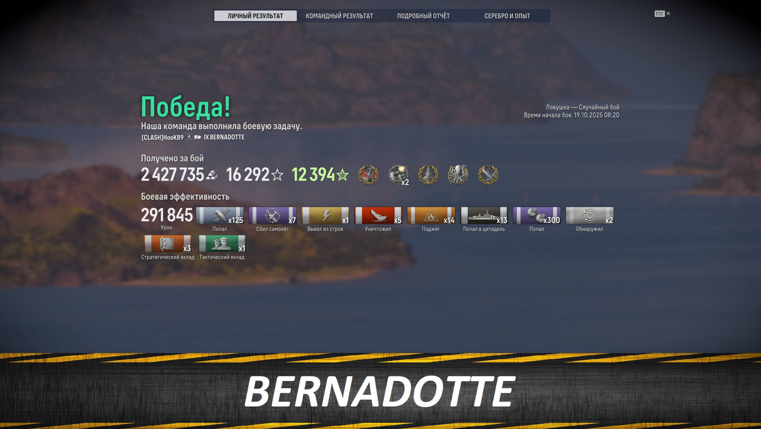 BERNADOTTE, 291 845 урона, 5 уничтоженных, 6 наград. Поддержать автора - dzen.ru/id/60fae9bb5a0f463a71b440c0?donate=true