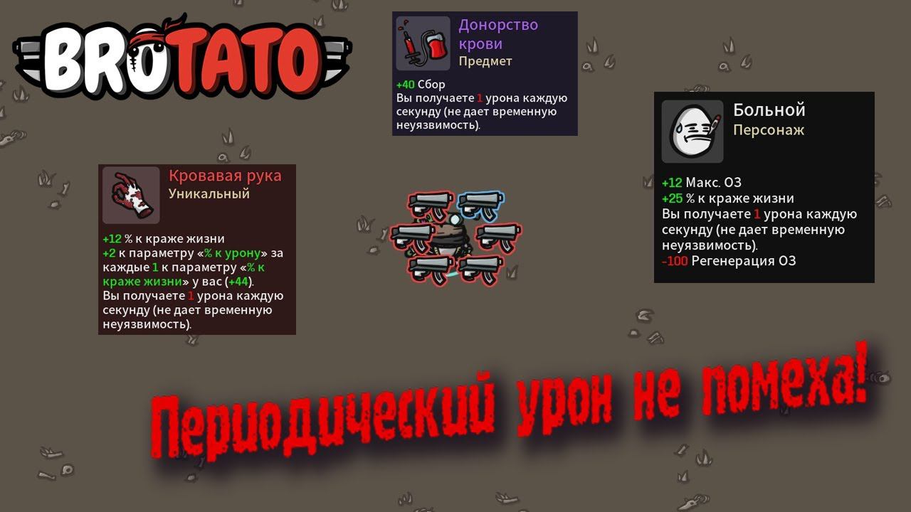 Brotato ► Персонаж Больной - Взял кровавую руку и донорство но все равно выжил! Кража жизни тащит!