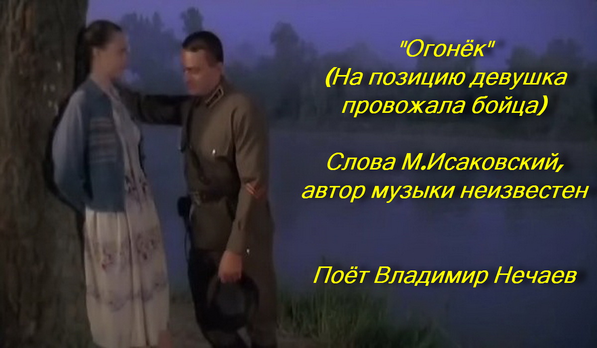 "Огонёк" (На позицию девушка провожала бойца) - поёт Владимир Нечаев. Автор слов Михаил Исаковский, автор музыки неизвестен. Удачи!