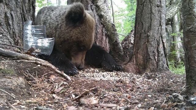 Нападение медведя в Ленинградской области на семечки. #медведь #косолапый #фотоохота