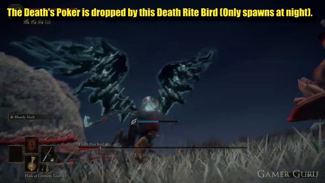 How to get Death's Poker in Elden Ring. It is dropped by this Death Rite Bird (only spawns at nightime). #EldenRing
