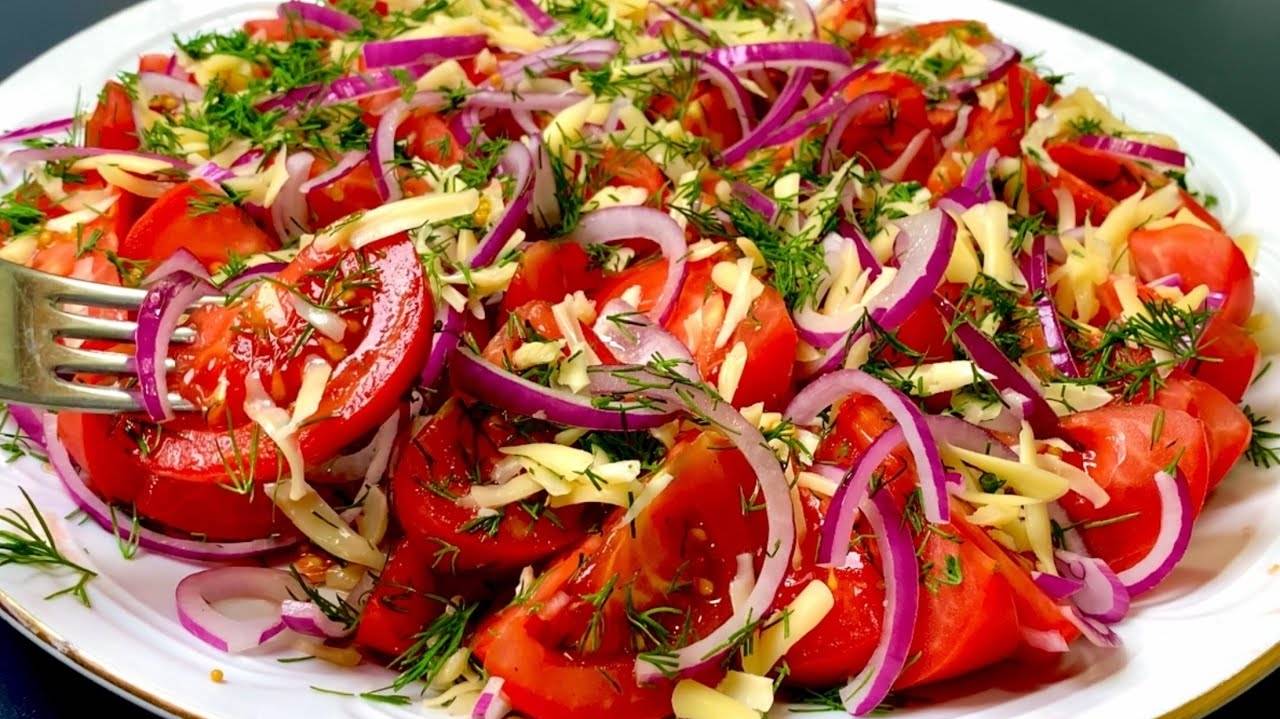 Быстрый и Вкусный Салат из Помидоров! Покоряет сразу. Необыкновенный вкус, ароматная заправка.