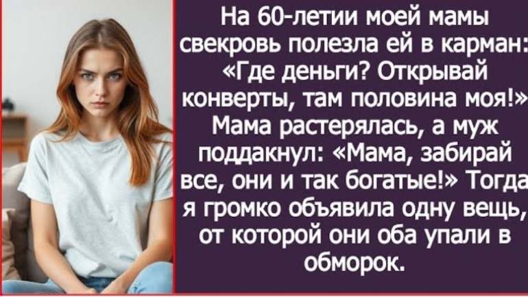 ИСТОРИЯ ИЗ ЖИЗНИ/Открывай конверты с деньгами, вторая половина моя,- вопила свекровь на юбилее мамы