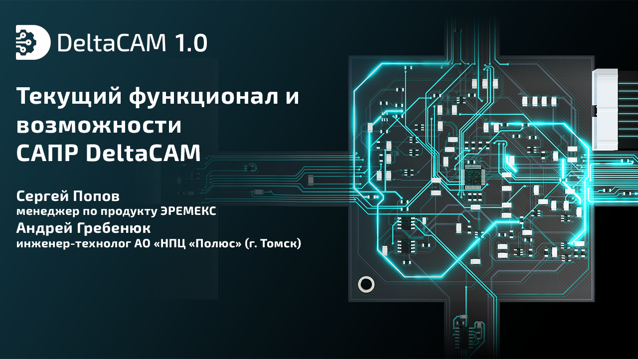Публикуем запись онлайн-семинара от 29.02.24, посвященного актуальному функционалу САПР DeltaCAM, предназначенной для просмотра, редактирования, верификации и создания производственных файлов. В первой части вебинара были рассмотрены: - работа (импорт/экспорт) с Gerber и Drill файлами; - редактирование объектов на слоях проектов (создание апертур, макро-апертур); - создание стека слоев и пути фрезеровки; - возможности по созданию заготовки и размещению на ней проектов. Также будут затронуты вопросы взаимодействия DeltaCAM с Delta Design и другими САПР печатных плат. Во второй части онлайн-семинара сделан краткий обзор бета-тестирования программного продукта, проведенного на предприятии АО «НПЦ «Полюс», г. Томск. Провели вебинар Сергей Попов, менеджер по продукту компании ЭРЕМЕКС, и Андрей Гребенюк , инженер-технолог лаборатории печатного монтажа, изготовления фотошаблонов и автоматизации технологических процессов АО «НПЦ «Полюс» (г. Томск). Задать свой вопрос и узнать больше о системе Delta Design вы можете на сайте http://eremex.ru/