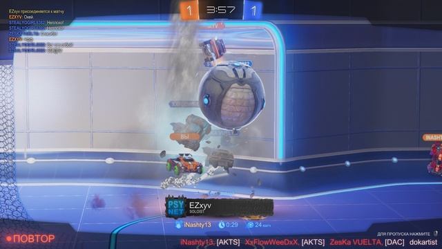 rocket league - гол тиммейта вихревой от борта