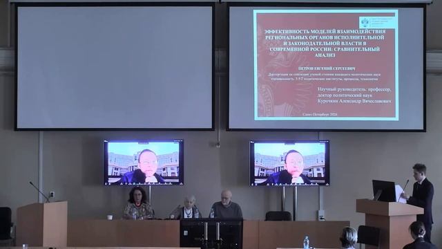 Диссертация на соискание ученой степени кандидата политических наук Научная специальность 5.5.2 Политические институты, процессы, технологии Тема: «Эффективность моделей взаимодействия региональных органов исполнительной и законодательной власти в современной России: сравнительный анализ» Место проведения заседания: Санкт-Петербург, Университетская наб., д. 7–9–11, лит. В, ауд. 191