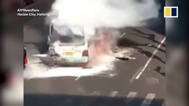 Настоящий Китай без Цензуры! Китайцы бегут из горящего автобуса.