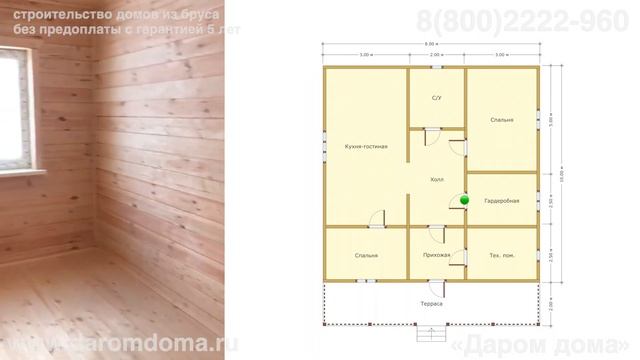 Обзор одноэтажного дома 8 на 10 метров из бруса с террасой, с кухней-гостиной, двумя спальнями, котельной и ванной комнатой https://daromdoma.ru/dom-v-voskresenskom-selskom-poselenii-fotootchet/ В октябре в «Даром Дома» обратилась Ирина. Дом предстоит построить в Череповецком районе Вологодской области. Ирина решила строить дом из профилированного бруса камерной сушки. Использование материала прошедшего предварительную обработку в сушильной камере, позволит избежать нюансы, связанные с усадкой строения. Дом, собранный из материалов камерной сушки, можно обживать сразу по завершении строительства. Заказчица предоставила свой проект. Одноэтажный дом размером 10х8 м с холодным чердаком и вальмовой крышей. Чердак создает буферное пространство, которое улучшает шумоизоляцию и облегчает обслуживание кровли. Также в доме с холодным чердаком технически просто разместить полноценную систему вентиляции. Вальмовая крыша формирует запоминающийся внешний вид дома с нотками южно-европейской архитектуры. Внутри дома размещены кухня-гостиная, прихожая, котельная, гардеробная, ванная комната, холл и две спальни. Доминирует в планировке просторная кухня-гостиная. Благодаря наличию гардеробной, можно избавиться в интерьере от массивной мебели. Котельная позволит с удобством разместить и обслуживать внутри дома инженерное оборудование. Прихожая позволит не только с комфортом раздеться, но и возьмет на себя функции тамбура. Наличие дополнительного буферного пространства между улицей и жилым периметром внутри дома особенно полезно в холода. В проекте продуман момент размещения системы водоотведения — кухня-гостиная и санузел примыкают друг к другу. В проекте есть своя изюминка — роскошная терраса размером 2х8 м. Открытая терраса станет прекрасным местом для отдыха на свежем воздухе. Внутри дома размещены три жилых комнаты, поэтому дом подойдет для жизни или отдыха за городом семье из 3-4 человек. Дом построен за 35 дней без предоплаты, по договору и с гарантией пять лет. Его итоговая стоимость с доставкой материалов в Вологодскую область, составила 3 461 000 рублей. Цена актуальна на январь 2022 года. #Дом8На10 #ДомИзБруса #ОдноэтажныйДом #ЗимнийДом #ДомСКухнейГостиной #ДомСКотельной #ДомСВаннойВДоме #ДомСДвумяСпальнями #ДомСТеррасой #ДомСГардеробной