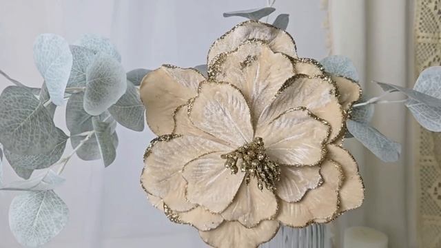 https://www.morozko-shop.ru/ Искусственный цветок МАГНОЛИЯ 'БАРХАТНАЯ МЕЛОДИЯ' на клипсе, текстиль, розовый перламутр, 13522