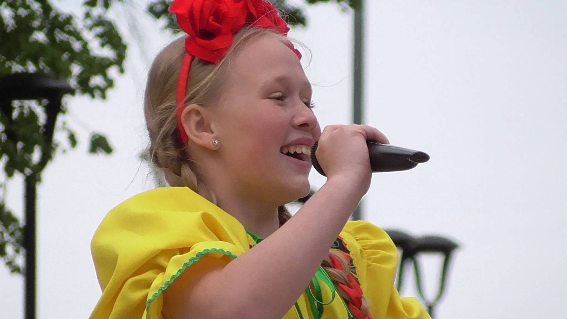 Девушка поёт песню: Выходила на берег Катюша