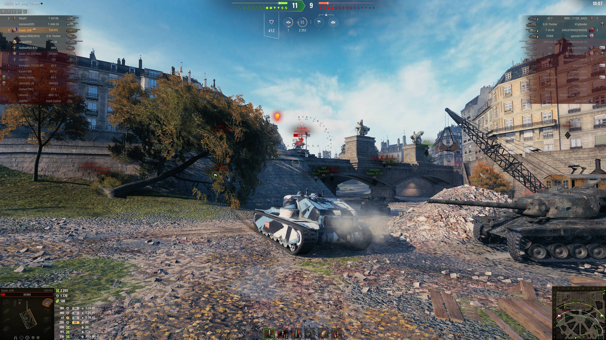 И снова Париж. И снова T28HTC. Танкую как могу. Рубка с тяжами. Квасик пытается меня пробить фугасами. Олень конечно же.
