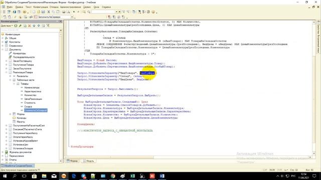 Модуль 16 сложное задание: выгрузить остатки в табличную часть (SB)